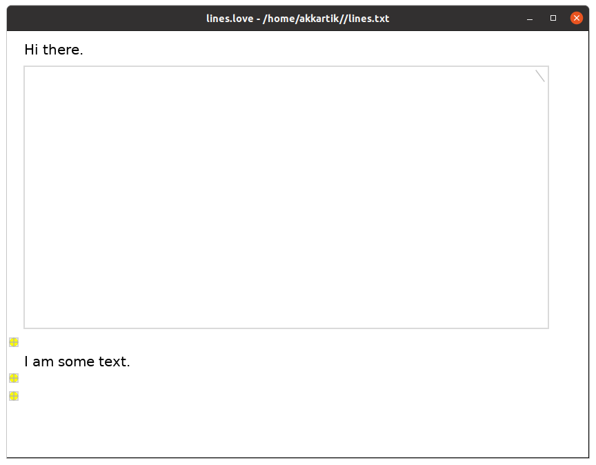 Step 3. Double-click on it and start writing. Or drag a (sub-50KB) file on to the window to edit it. (Make a backup first, though. I've been using it for a few weeks without issues, but lines.love comes with no warranties. See the GPLv2 license inside the download—which is just a zip file—for more details.)
